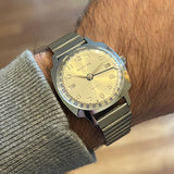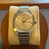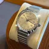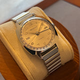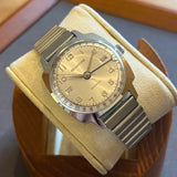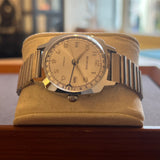 Diameter 33 mm. Steel case and bracelet. Smooth steel bezel. Silver dial with Arabic numerals. Automatic movement. Caliber AS 1900. Solid steel antimagnetic case back. Steel deployant clasp.