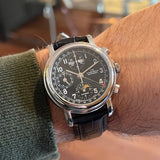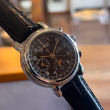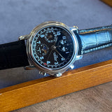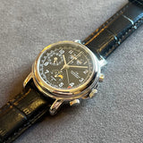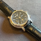 Functions: hours, minutes, small seconds, chronograph, moon phase, second time zone, day display, month display.