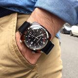 - Bidirectional rotating black inner ring with white Superluminova® C1 triangle and hour marker, red line and dots
