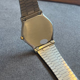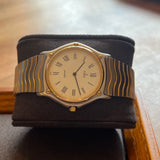 Diameter 34 mm. Gold-plated steel case and bracelet. Gold-plated steel bezel. Ebel crown. White dial with Roman numerals. Gold hands. Quartz movement. Solid steel case back. Steel buckle with Ebel emblem.
