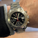 Functions: Hours, minutes, chronograph, date display at 3 o'clock.