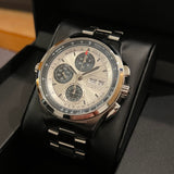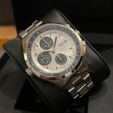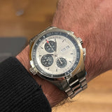 Functions: Hours, minutes, chronograph, day and date display at 3 o’clock.