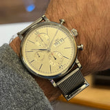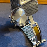 Functions: Hours, minutes, chronograph, date and day display at 3 o'clock.