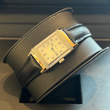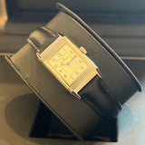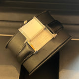 Diameter 35.78 mm * 21 mm. Stainless steel case. Stainless steel bezel. Silver dial with Arabic numerals. Blued hands. Sapphire glass. Quartz movement. Solid stainless steel case back with Jaeger-LeCoultre emblem. Non-original replacement black leather strap. Stainless steel pin buckle with Jaeger-LeCoultre emblem.