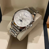 Functions: Hours, minutes, chronograph, Moonphase, day, month, and date display.