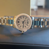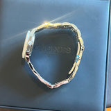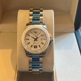 Diameter 29.5 mm. Stainless steel case and bracelet. White ceramic bezel. Screwed solid caseback. White dial. Waterproof 300 meters. Quartz movement. Sapphire crystal. Double folding clasp.