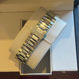 Watch authenticated by our team. New watch with stickers on the bracelet and the caseback. Contents: Watch, outer box, box.