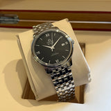 Diameter 36.8 mm. Wrist circumference without additional links is 16.5 cm. Case and bracelet in stainless steel. Smooth steel bezel. Original Omega crown. Black dial with Roman numerals. Sapphire crystal. Automatic movement. Omega Caliber 2500. Solid steel case back with Omega emblem. Steel deployant clasp with Omega emblem.