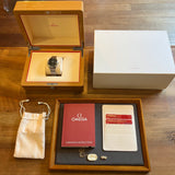 Contents: Watch, box, outer box, warranty card, Omega card holder.
