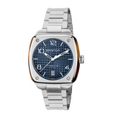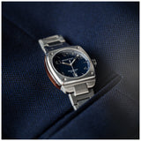 HMS Streamliner Urban automatic watch, 40 mm. Case in brushed steel and tortoiseshell acetate. Upper bezel in brushed steel with mirror-polished finish and 4 screws. Navy blue embossed dial. Hours, minutes, seconds and date window at 6 o'clock. Hands with Superluminova® luminescent inserts. Ultra-resistant sapphire crystal. Transparent back. Oscillating movement with "Côte de Genève" decoration. Exclusive Briston stainless steel bracelet. Calibre with Japanese automatic movement NH35A.