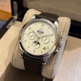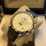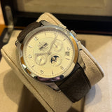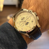 Functions: Hours, minutes, chronograph, moon phase, day, month, and date display.