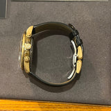Ultra-domed anti-reflective treated sapphire crystal. Black dial. Metal appliqué numerals and indices. Super-Luminova-filled hour and minute hands. Satin-polished Bronze deployant buckle.