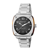 HMS Streamliner Urban automatic watch, 40 mm. Case in brushed steel and tortoiseshell acetate. Upper bezel in brushed steel with mirror-polished finish and 4 screws. Black embossed dial. Hours, minutes, seconds and date window at 6 o'clock. Hands with Superluminova® luminescent inserts. Ultra-resistant sapphire crystal. Transparent back. Oscillating movement with "Côte de Genève" decoration. Exclusive Briston stainless steel bracelet. Calibre with Japanese automatic movement NH35A.