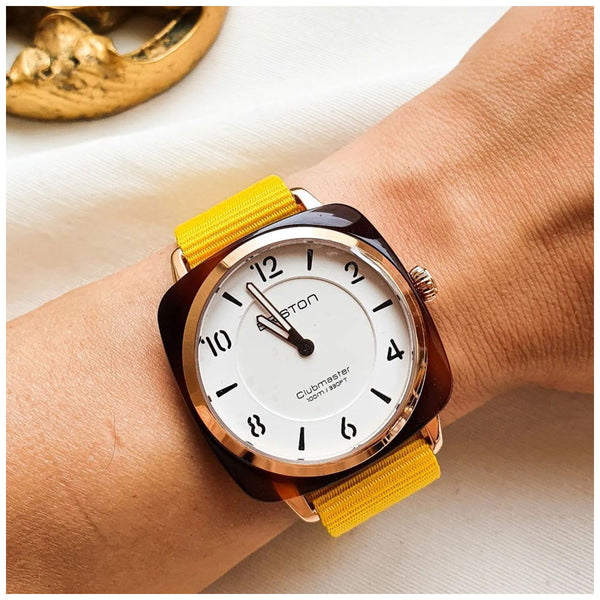 Discover Briston Watches inspired by the British spirit from the Oxford campuses to the polo fields and rowing races. The brand signature : a tortoiseshell acetate case offering lightweight durability, and striking visual contrast.