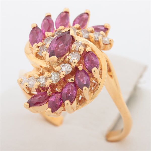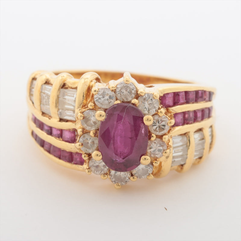 Ring Ruby & Diamonds Yellow Gold 18kt 7.1g