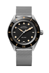 Housed in a finely brushed-and-polished 41 mm steel case, it sports a black ceramic bezel, box-shaped sapphire crystal and a long-lasting La Joux-Perret G100 automatic calibre with 68-hour power reserve.