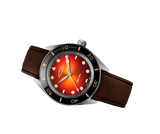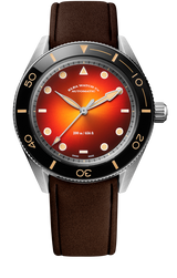 The amber tone of the dial mirrors the colour of local sandstone and whisky,