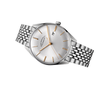 a supple “rice-grain” steel bracelet, all powered by La Joux-Perret’s long-running