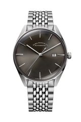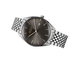 Reference D03-1003 pairs a sun-brushed grey dial with a vintage-inspired “Rice Grain” steel bracelet while keeping
