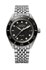 La collection « Arinis » rend hommage au riche patrimoine du lac de Neuchâtel : un design vintage 60-70 s harmonisé avec des spécifications modernes, dont une lunette céramique noire et un calibre La Joux Perret G100 automatique offrant 68 heures de réserve de marche.