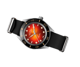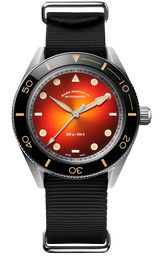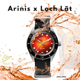 Arinis is ELKA’s 200 m “lake-diver” line inspired by the rich Roman and Celtic history of Lake Neuchâtel. This special Arinis x Loch Lãt edition pairs a warm amber gradient dial with a stealthy black NATO strap and houses the long-running La Joux Perret G100 automatic calibre.