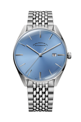 Part of the pebble-shaped “D Series”, this ELKA D08-1003 brings a joyful Baby Blue sun-brushed dial together with a supple Rice-Grain steel bracelet. Inside beats La Joux Perret’s new-generation G100 automatic calibre with a generous 68-hour power-reserve.