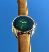 Limited to just 25 pieces worldwide, the ELKA S05-0811 pairs a sun-brushed gradient green dial with the brand’s pebble-shaped case to create a minimalist time-only contemporary classic. Beneath the vintage-inspired “box” sapphire crystal ticks the modern La Joux-Perret G100 automatic calibre, delivering an impressive 68-hour power reserve.