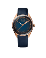 “Timepeace” is ELKA’s artistic call for harmony, and reference TP01-0805 translates that vision into a refined everyday watch. Powered by the long-running La Joux-Perret G100 automatic calibre and framed in a warm 5N-rose-gold PVD case, it pairs a dark-blue dial bearing a message of peace (printed in Elvish calligraphy) with a matching leather strap.