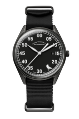 Born from a collaboration with HEROES Media, the ELKA X Heroes is an ultra-limited run of just 25 numbered pieces. Its pebble-like 40.8 mm case is sand-blasted, then treated with a gun-grey PVD finish, framing a matte-black dial that hides the HEROES raven at “25”. Beating inside is La Joux-Perret’s G100 automatic calibre, delivering 68 hours of autonomy.