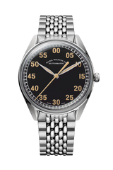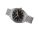 Part of the sport-minded ELKA X Series, reference X01w-1003 combines a vintage-inspired “pocket-watch” case with a modern La Joux-Perret G100 automatic calibre offering an impressive 68-hour power-reserve. This “w” version is purposely no-date, giving the black dial perfect symmetry. Supplied on the signature rice-grain stainless-steel bracelet, it delivers both retro charm and everyday versatility.