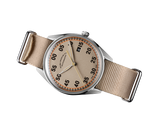Part of the sporty ELKA “X” line, the X02B-0901 pairs vintage–tool-watch charm with 21st-century specs. Its beige “sand-fade” dial, bright Super-LumiNova accents and khaki-beige NATO strap give it a warm, field-ready look, while the long-reserve La Joux-Perret G100 automatic calibre keeps perfect time for days on end.