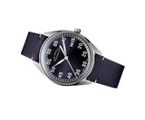 The Elka X series is the sporty version. This model is fitted with a cut-edge dark blue leather strap. The Blue dial has white Superliminova numerals, such as the hour and minute hands.
