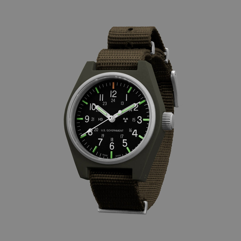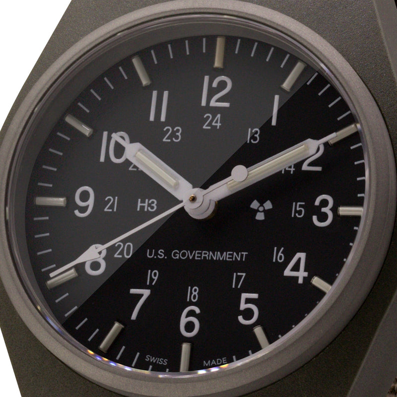 Commonly known as the General Purpose Quartz (GPQ) is manufactured in accordance with MIL-PRF-46374G, Type II, Class 1 Housing a Swiss-made, 3-Jewel high-torque quartz movement with an EOL (end-of-life) indicator for monitoring battery life.