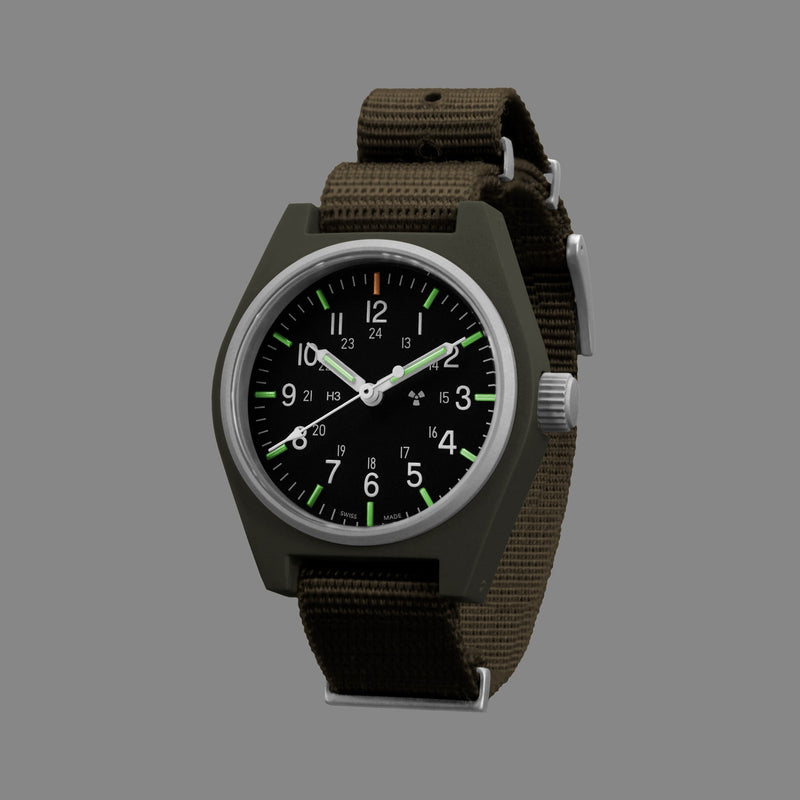 The General Purpose Field Watches are built to strict military standard, MIL-PRF-46374G, and finding its heritage since the development of that spec. Each General Purpose Field Watch features a 34mm high-impact composite fibreshell case for ultra-light durability.