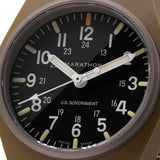 The Marathon 34mm General Purpose Quartz with MaraGlo (GPQ-M) is manufactured in accordance with MIL-PRF-46374G, Type I, Class 1. The hour indices and hands utilize MaraGlo luminescent paint, delivering a bright glow that will shine for up to 8 hours.