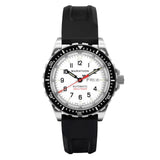 The Marathon 46mm Arctic JDD is a rugged and reliable dive watch engineered for use in the most extreme conditions. This model features a stark white dial specially chosen to reduce glare in bright environments. Designed in Canada, this watch is Swiss-made and features a 26 Jewel Sellita SW220 movement with Incabloc™ shock absorber providing premium precision. The watch also includes a day/date calendar, equipped with Rapid Day Date Correction which allows for easy adjustment of the day and date.