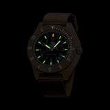 Marathon Navigator (NAV) watches were originally developed in partnership with Kelly Air Force Base in 1986. The NAV Series consists of timepieces engineered to stand up to the rigours of high-altitude flight — and even possible ejection from a fighter aircraft. Featuring an iconic asymmetrical case design available in both 316L stainless steel and high-impact composite fibreshell for ultra-light durability, each watch is equipped with a sapphire crystal tolerant of rapid changes in air pressure; a continuously glowing dial; and a bi-directional bezel with the ability to track a second time zone.