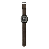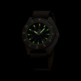 Marathon Navigator (NAV) watches were originally developed in partnership with Kelly Air Force Base in 1986. The NAV Series consists of timepieces engineered to stand up to the rigours of high-altitude flight — and even possible ejection from a fighter aircraft. Featuring an iconic asymmetrical case design available in both 316L stainless steel and high-impact composite fibreshell for ultra-light durability, each watch is equipped with a sapphire crystal tolerant of rapid changes in air pressure; a continuously glowing dial; and a bi-directional bezel with the ability to track a second time zone.