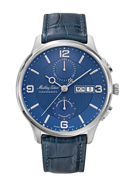 Mathey-Tissot Edmond Chrono Auto Stainless Steel / Blue Leather & Dial H1886CHATABU