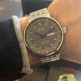 Functions: Hours, minutes, central seconds, day and date display at 3 o'clock.