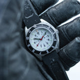 A robust tool watch that represents a fully re-engineered upgrade to Marathon’s original Steel Navigator, developed in partnership with the Kelly Air Force Base in 1986. Featuring a white dial for increased visibility during daylight operations, the Arctic SSNAV boasts unmatched accuracy that caters to pilots, parachutists, and adventurers.
