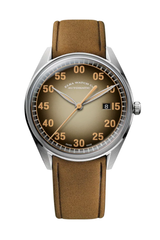The Elka X series is the sporty version. This model is fitted with a semi-padded nubuck strap with a microfibre back for added comfort. The beige to black dial has Superliminova numerals with a "burnt by time" effect.