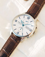 Mathey-Tissot Edmond Chrono Auto Stainless Steel / Brown Leather & White Dial H1886CHATAI