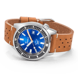 The “Matic” line is Squale’s modern take on the legendary Squalematic of the late-1960s. This Dark Blue edition pairs a rich sun-ray dial with a vintage cushion case and delivers professional 600-metre performance while remaining slim enough for daily wear.