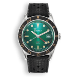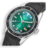 This Vintage Green edition pairs a rich sunburst dial with cream-toned “Old Radium” lume and a bidirectional 24-hour bezel — perfect for travellers who dive.