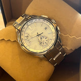 Functions: Hours, minutes, central second, day display, GMT, date display at 3 o’clock.