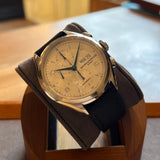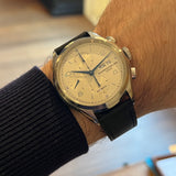 Functions: Hours, minutes, chronograph, day and date display at 3 o'clock.