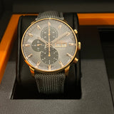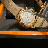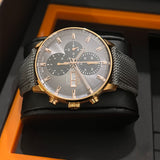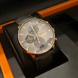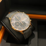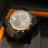 Functions: Hours, minutes, chronograph, day and date display at 3 o'clock.