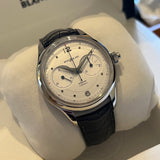 Diameter 42 mm. Stainless steel case. Smooth steel bezel. White dial with Arabic numerals. Luminous hands and markers. Sapphire crystal. Automatic movement. Caliber MB 25.12. Solid stainless steel case back with Montblanc emblem. Original Montblanc black leather strap. Double folding steel clasp with Montblanc emblem.