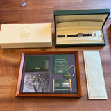 Contents: Watch, box, outer box, user manual and warranty booklet, Rolex card holder, Rolex tag, warranty card.
